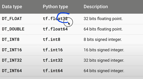 5. Tensor Types (대부분 tf.float32를 많이 사용)