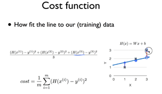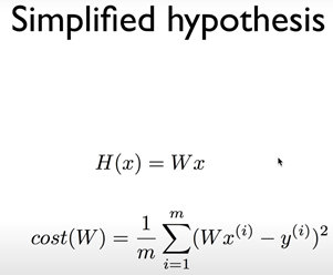 cost(W,b)의 값을 가장 작게 하는 W와 b를 구하는 것이다. => minimize cost(W,b)