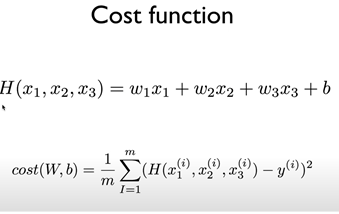 => 가장 실제 데이터와 맞는 선을 찾기위해서 실제 데이터와 가설의 선의 거리를 계산