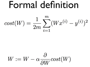 - cost(W)를 미분한 것 == 기울기를 구한다.