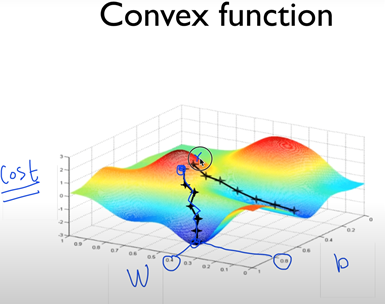 주의할 점 : cost(W,b)를 설계할 때 모양이 Convex function이 되는 것을 확인해야 한다.