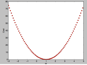 W = 0, cost(W) = 1/3(0 * 1 – 1 ) ^2 + (0 * 2 – 2 ) ^2 + (0 * 3 – 3) ^2 = 4.67