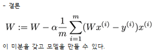 - 마이너스(-)를 붙이는 이유는 기울기가 –가 되기 때문에 W를 조금 더 큰 값으로 움직이겠다는 표현이다.